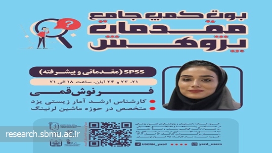 به گزارش روابط عمومی معاونت تحقیقات و فناوری دانشگاه_ کارگاه پنجم، ششم و هفتم بوت کمپ جامع مقدمات پژوهش با تدریس فرنوش قمی، کارشناس ارشد آمار زیستی یزد و متخصص در حوزه ماشین لرنینگ 21 لغایت 24 آبان ماه، از ساعت 18 الی 21 بصورت مجازی و در بستر اسکای روم برگزار می شود.