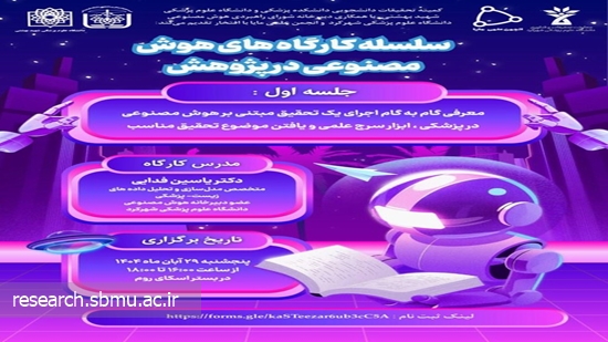 به گزارش روابط عمومی تحقیقات و فناوری دانشگاه_ جلسه اول از سلسله کارگاه های "هوش مصنوعی در پژوهش" با موضوع "آشنایی با ابزار سرچ به کمک هوش مصنوعی" با تدریس اساتید برجسته دانشگاه های علوم پزشکی شهید بهشتی و شهرکرد، روز پنج شنبه 29 آبان ماه از ساعت ۱۶ تا ۱۸، در بستر فضای مجازی برگزار می گردد.